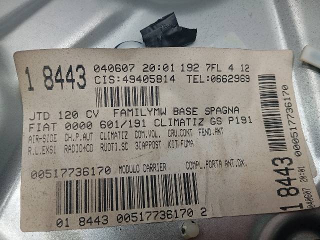 MOTOR ELEVALUNAS DELANTERO DERECHO - FIAT STILO 1.9 JTD SW (192C) 120CV (2005-2008) 88KW (2007)